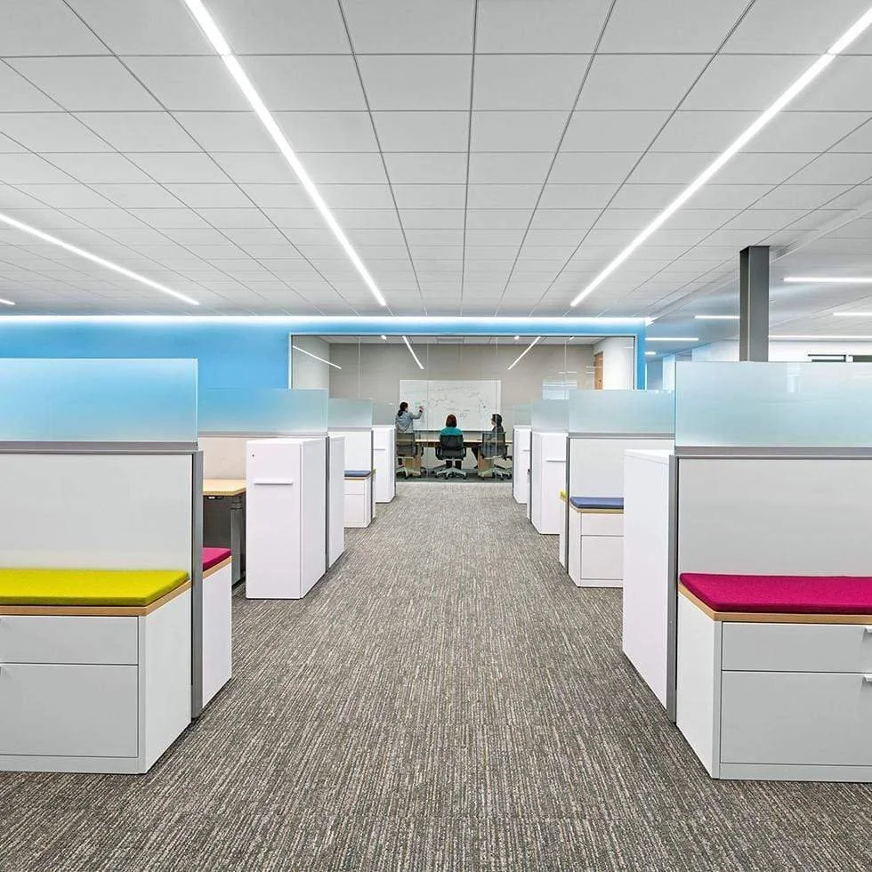 Custom Suspended Systems: Engineering modern "floating" clouds, baffles, and traditional T-bar grids that hide unsightly utilities while providing easy maintenance access.